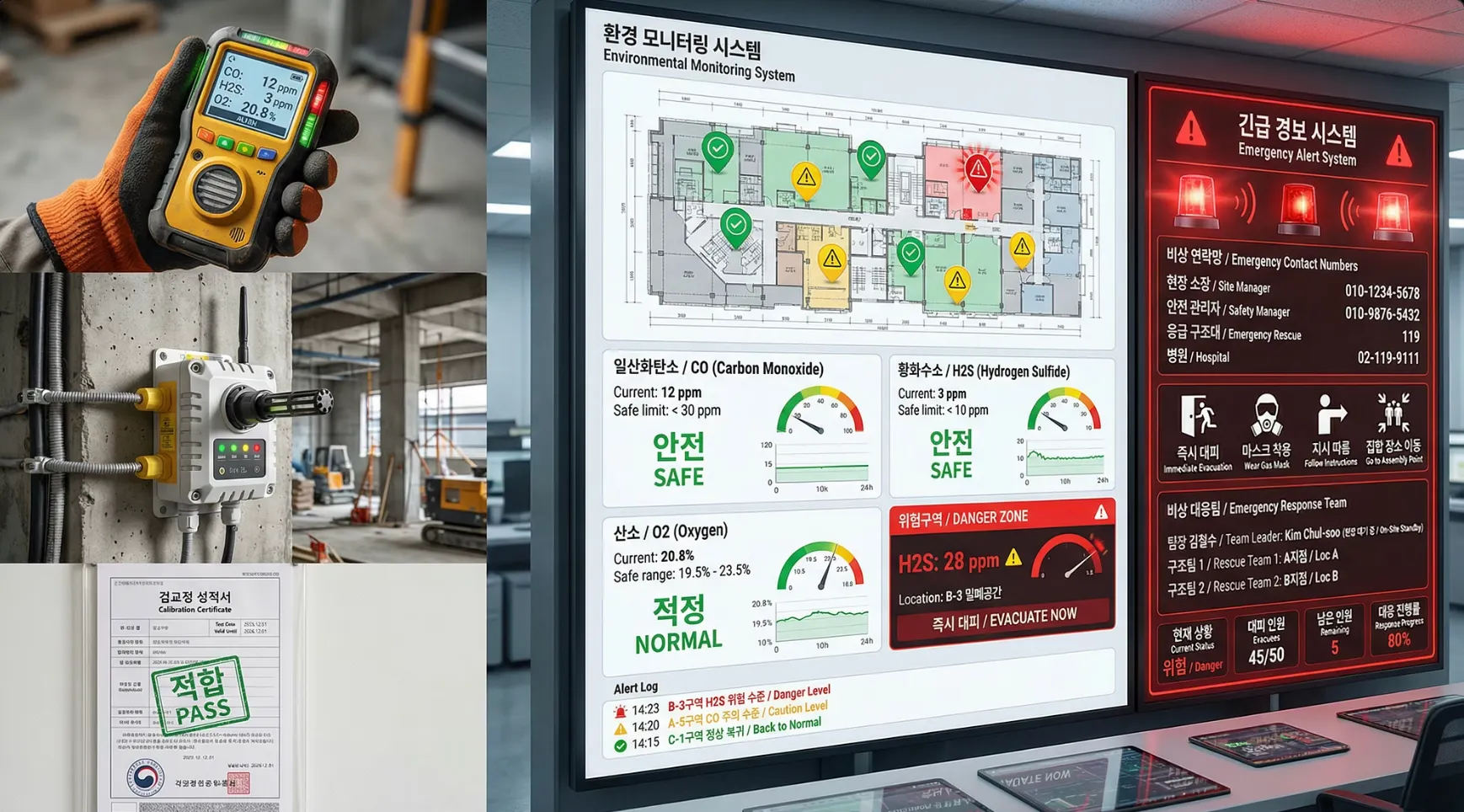 환경 감지: 연기/불꽃, 유독가스 (H2S, CO)